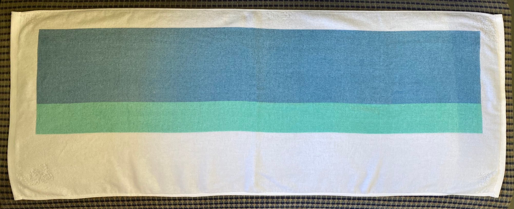 クハ115-1106の塗装時に使用したホンモノの長野色をベースにタオルを製作しました。
